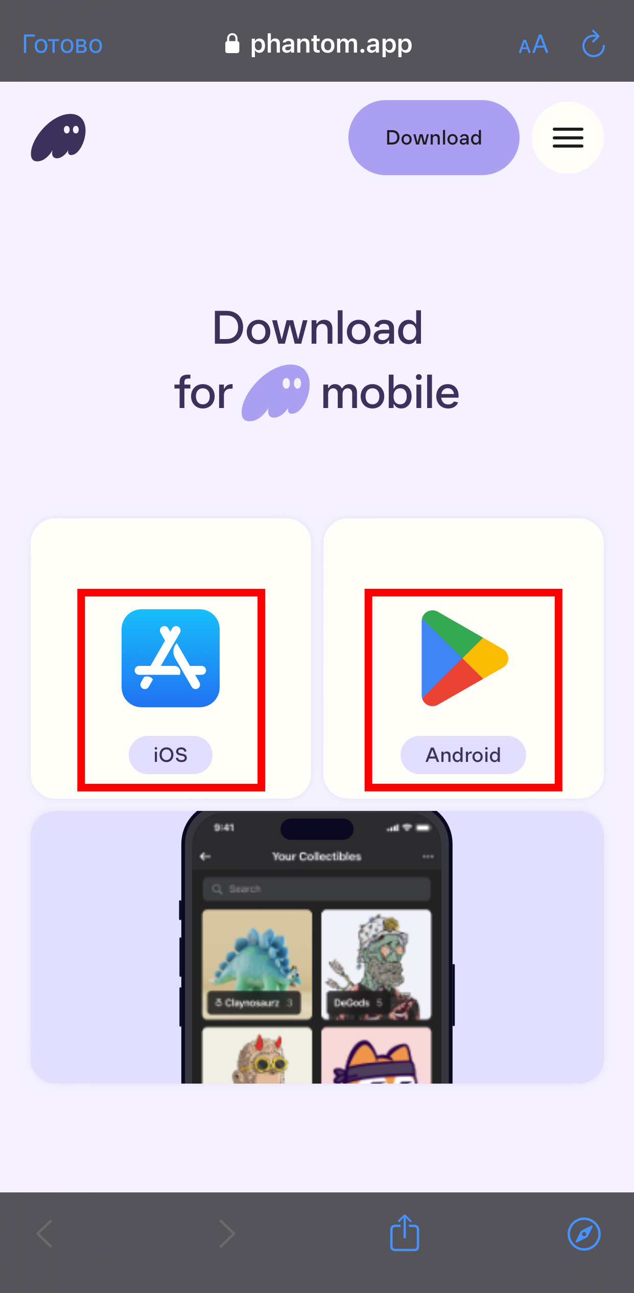 Шаг 1. Перейдите по ссылке, чтобы скачать приложение «Phantom». Нажмите на «iOS», если у вас IPhone, или выберите «Android», если у вас Android.